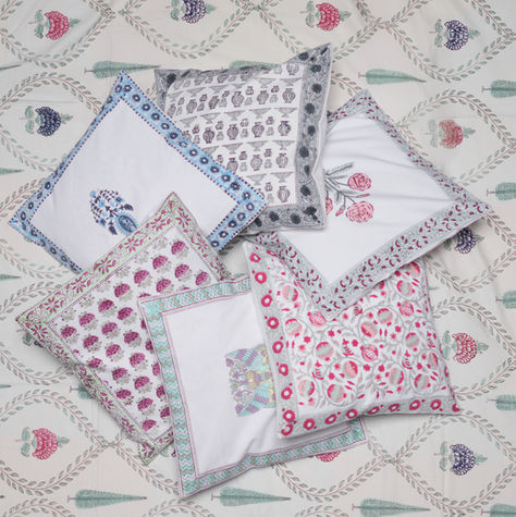 Elevate your space with this set of 5 premium cushion covers, made from 100% pure cotton and adorned with timeless hand block prints.