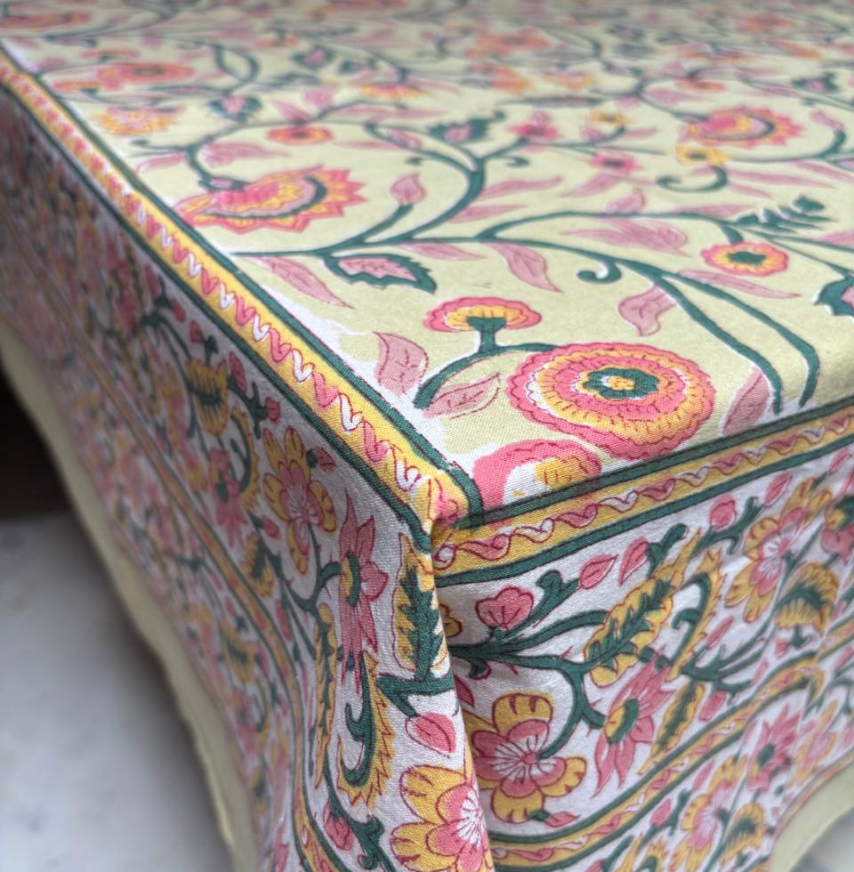 Elevate your space with this Hand Block Printed Table Covers made from Cotton canvas and adorned with timeless hand block prints.