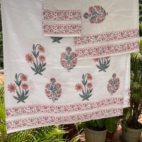 This beautifully Designed Set comes with gentle, effective, and authentic handblock printed towel set in intricate Indian patterns.